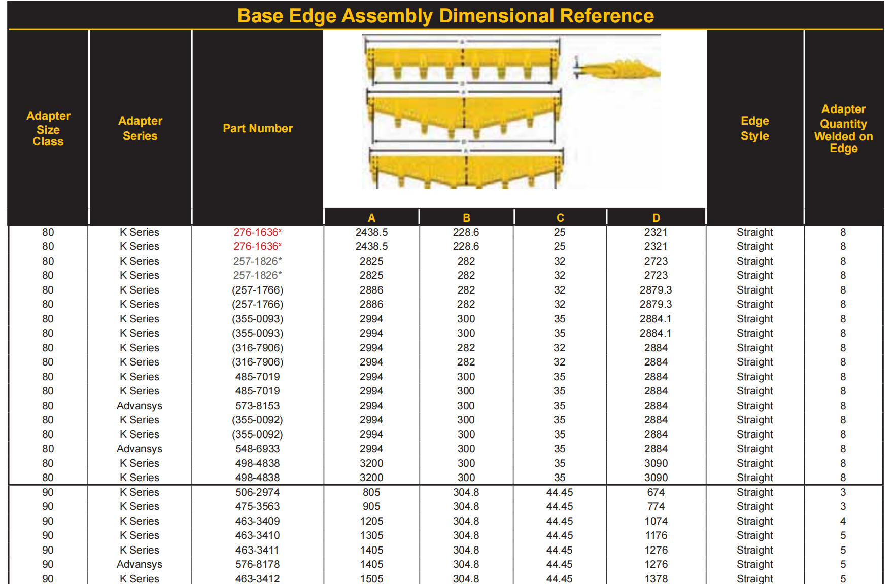 | 9W1768 | 553,7mmX235mmX13mm 5/8'X8 | Bits finais da grade | 12 | |